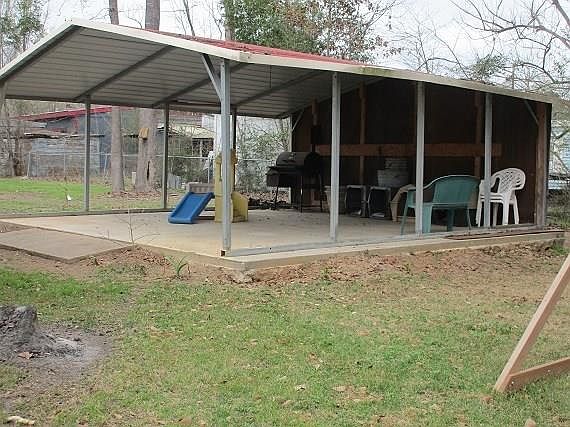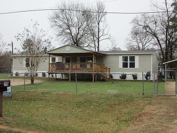 GREAT CATCH in Lake Livingston area. Pristine 4-year old double-wide on 4 fully-fenced lots that total almost 3/4 acre with 4 bedrooms and 2 full baths. Property includes a separate building for the 18x24 workshop and 14x23 gameroom. Also includes 1/2 bath in building outside of workshop/gameroom building, a storage shed and covered patio with concrete floor. Double carport has concrete floor. Electric gate at start of driveway is part of the yard being fully-fenced. Super nice new front porch with gate. Mrs. Clean lives here. The air return is cleaned thoroughly every 2 weeks. The house is immaculate and so spacious with large closets. DON'T LET THIS ONE GET AWAY!