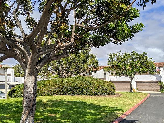 This spacious and artistic townhouse sits in a neighborly plaza on the ocean side of the freeway. The light-filled home backs to Mira Costa Park and catches the sea breezes. Large living room includes a gas-log fireplace and vaulted ceilings. Generous dining room has a stained glass chandelier. There's a half-bath downstairs. Kitchen features tile counters and a breakfast nook. Beautiful laminate floors throughout, and double-pane windows. Master suite includes two closets (one a walk-in), a remodeled bathroom and a private balcony overlooking the plaza. Two other bedrooms gaze out over Mira Costa Park and share a bathroom. The two-car attached garage has lots of storage shelves. Just a short walk to Sprouts market & shops & restaurants. Owner is a real estate broker DRE # 00689169 Dogs okay subject to review & approval with a $500 pet deposit. Please note this ocean-close townhome has ceiling fans upstairs and one portable A/C unit but no central A/C. Non-smoking property. Owner pays HOA & water.