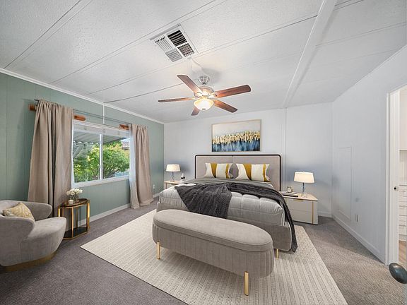 Rare find a 2 bed and 2 bath, home located in an Active Senior 55+ Community. This spacious 1440 Square foot, home has large living and family space with indoor laundry room w/ Cabinets, lots of storage, low maintenance landscaping, extra shed area. Enjoy community amenities just a walk away from clubhouse and swimming pool, spa and game room. Conveniently located near shopping, dinning, and public transportation. A Must See!! NO APPLICATION FEE FOR PARK APPROVAL.