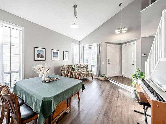 Beautifully Updated 3-Level Split with Two Garages in Citadel Located in the family-friendly community of Citadel, this well-maintained 3-level split has been thoughtfully updated and offers 3 bedrooms and 2 full 4-piece bathrooms, including a private ensuite for the primary suite. Recent upgrades include 30-year Corning shingles on the house (2017) and detached garage (2023), newer vinyl plank flooring, plush grey carpet, updated lighting, and freshly painted white cabinetry, stair rails, trim, and door headers. The vaulted ceiling enhances the open layout and brings in abundant natural light through large windows, including a striking angled kitchen window. The kitchen showcases painted cabinetry, newer stainless-steel appliances, new centre island, vaulted ceilings and an abundance of natural light. Flowing from the kitchen into the fully fenced, sunny backyard enjoy two composite decks, a fire pit and beautiful perennial gardens (strawberries, raspberries, blueberries, and rhubarb). Upstairs, the spacious primary suite includes a walk-in closet and 4-piece ensuite. Two additional bedrooms offer cushioned window seats and share a full 4-piece bath. The lower level features a cozy family room with a gas fireplace, soaring ceiling, and a conveniently located laundry room. Central air conditioning ensures year-round comfort. A true highlight of this property is the rare two-garage setup: a double attached garage plus an oversized 16’ x 22’ insulated and heated single detached garage—ideal for year-round projects, extra storage, or a workshop. This home is within walking distance to parks and St. Brigid School (K–9) and offers easy access to Country Hills Blvd., Sarcee Trail, Stoney Trail, Nose Hill Dr., and Crowchild Trail. Nearby amenities include the YMCA, movie theatre, major shopping, and dining. A beautifully updated home with two garages in a sought-after community—don’t miss your chance!