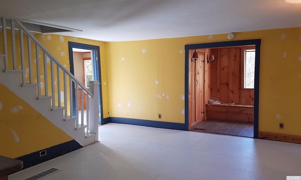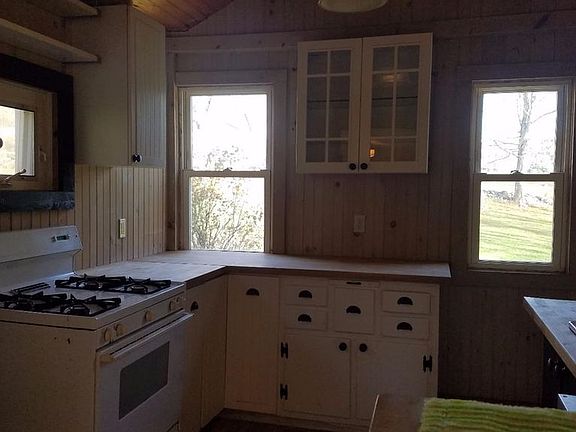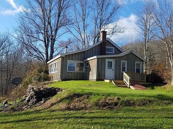 Cozy 1 1/2 story cape, 2 bedroom w/ bathroom, living area and sun room. New roof, new kitchen, new bathroom completed 2006. Structural updates too including new board & batten siding. Sun room with woodburning stove, has lovely views of surrounding hills and sounds of small creek behind, works as guest bedroom. Terraced gardens.