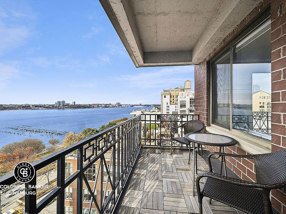 Upstairs, the primary bedroom offers its own private terrace, a renovated marble ensuite bath, and a king sized layout. The glass enclosed shower even enjoys open river views. The second bedroom is equally versatile, with a dramatic north facing window wall that makes it ideal as a guest room, office, or serene retreat. A second full bath, additional closets, and a secondary exit complete this level.