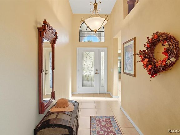 WOW! This is a very special 3 bedroom Terra Vista home located on Skyview's golf course 15th hole. Picture this... you enter the home and you immediately see the breathtaking golf course view through the sliding glass door at the end of the hallway. The 2 extra bedrooms are to your left, 1/2 bath and laundry room to your right. The kitchen has wood cabinets, hard surface counters and 2022-2025 purchased stainless steel refrigerator, inductive/convection oven with cook top and dishwasher. The eat-in kitchen has double pane sliding windows. In fact, all the windows and glass front door were replaced in 2024. Besides the extra insulation offered by the new widows, entire house solar panels were installed in 2022 on the tile roof providing energy saving dollars for the entire house. Based on the production of the solar panels, there is a $1600-$1800 savings per year. In 2022, a new heat pump and a new HVAC unit were installed. Engineered hardwood floors were laid in several rooms in 2022 and remaining rooms are tiled. There is a living room with built-in bookcases and fireplace (gas currently capped), formal dining room, master bedroom suite with walk-in closet and a den/office. This great home and all of these updates, mean you don't have to lift anything heavier than a suitcase to move in. Yes, there are many nice streets in Terra Vista but you will particularly enjoy living on Doerr Path making new friends, sharing meals and good times. You will cherish your peaceful surroundings sipping your favorite beverage on your screened lanai watching nature and the daily golfers pass by. So, many 3 year old updates, specifically, air conditioner, heat pump, windows, front door, entire house solar system, many wood floors, most appliances coupled with a great neighborhood and Citrus Hills lifestyle make this a must see and definitely a must buy. The Citrus Hills lifestyle includes multi dollar main gym and a smaller intimate gym, indoor/outdoor pools, tennis courts, golf courses, 2 country clubs with restaurants, tiki bar, fitness classes, pet park, pickle ball, line dancing and special seasonal entertainment events in the Activity Center ballroom or Hampton Room. Come see for yourself and discover a bit of paradise.