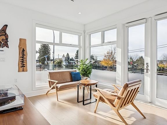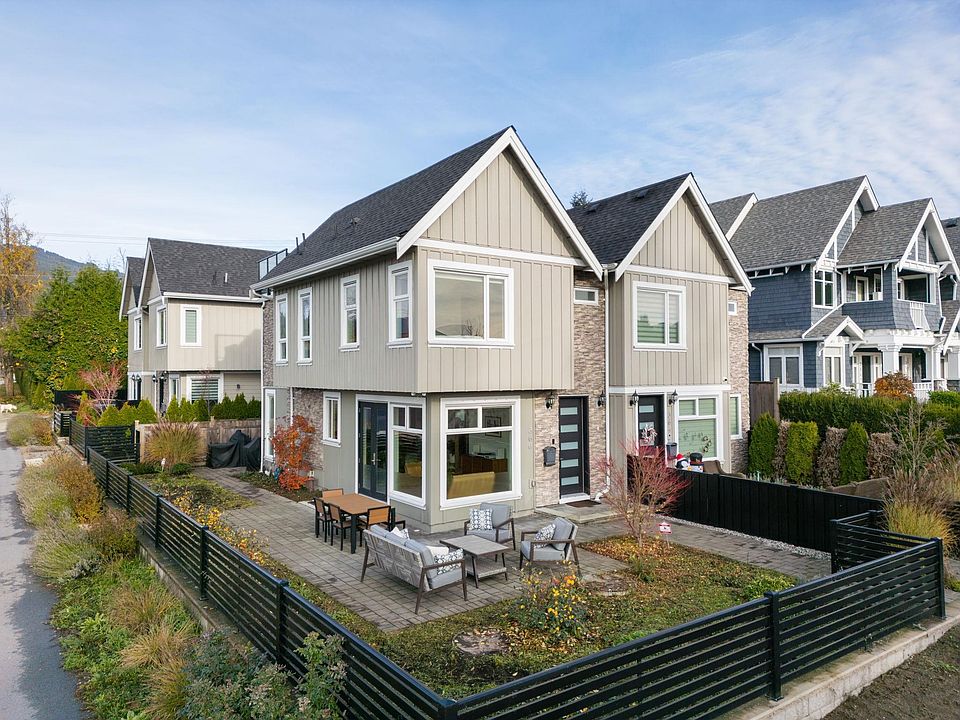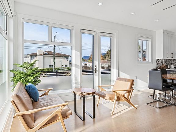 Thoughtfully designed for both functionality and aesthetics, this beautiful duplex offers modern comfort and style. With over-height ceilings and hardwood floors throughout, this quality-built home boasts over 2000 sqft of living space. Inside, enjoy a bright & inviting living/dining area with french doors that lead you out to a spacious 600 sqft patio & fenced yard. The well-appointed gourmet kitchen with gorgeous cabinetry & sleek stainless steel appliances is the heart of this home. Downstairs - a theatre room with wet bar and a full bathroom. Upstairs - 3 bedrooms each with a view of Stanley Park as well as two bathrooms offering contemporary finishings & fixtures. For added enjoyment, take in the views of the city & North Shore Mtns from the private rooftop deck. Call today!