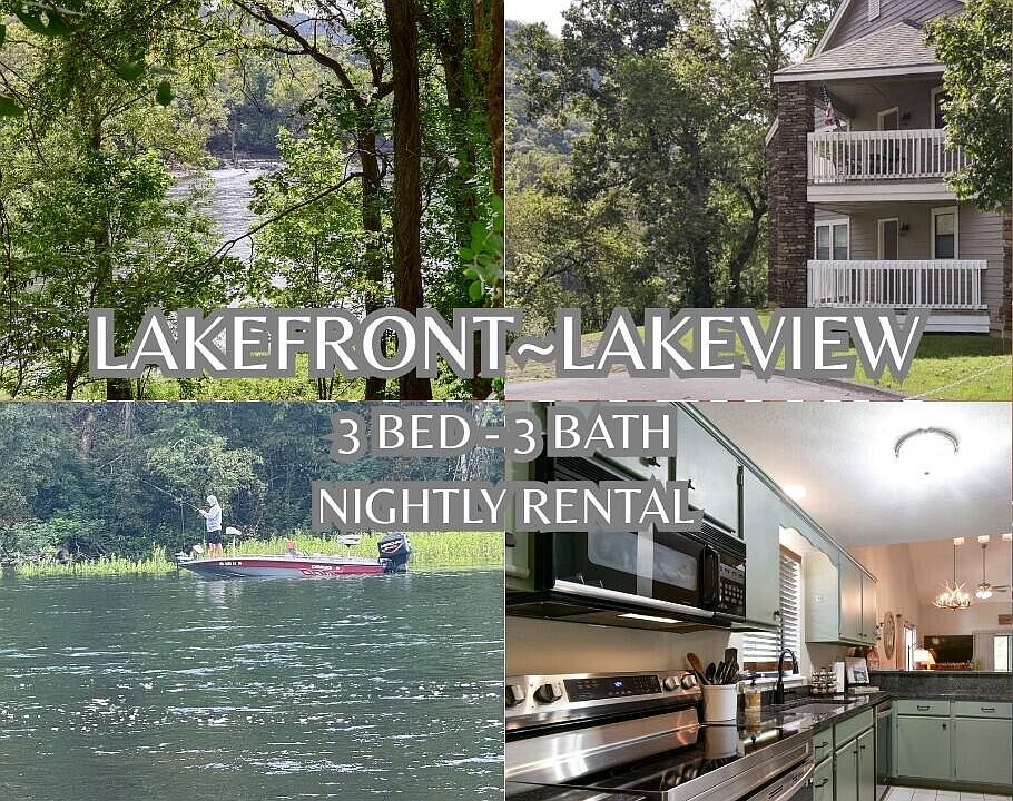 Direct lake taneycomo viewsGranite countertopsOpen-concept layoutStainless steel appliancesMain-level masterCorner unitTwo private decks