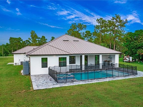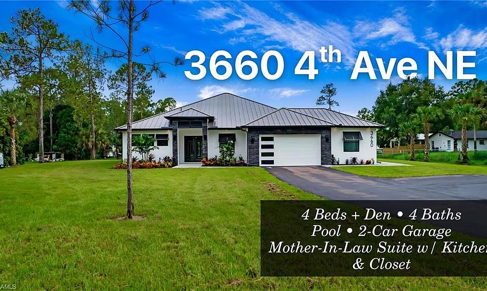 Discover your dream home! This immaculate 4-bedroom plus den, 4-bath residence features an oversized 2-car garage and sits on a stunning 2.27-acre lot with limitless potential. Located in a non-gated community, this is the perfect home you've been searching for! Key upgrades include elegant wood molding throughout, beautifully designed tongue and groove ceilings, and high-end Café brand appliances. The exceptional wall unit adds a touch of sophistication.Step outside to enjoy a fantastic outdoor kitchen, a sparkling pool, and beautifully landscaped front grounds. This property also boasts a separate mother-in-law suite, complete with a fully equipped kitchen and bathroom.The outdoor entertainment area is perfect for hosting gatherings by the pool, featuring a complete kitchen for all your entertaining needs. Embrace the Florida lifestyle in the expansive outdoor space, highlighted by a heated resort-style pool with a jacuzzi.This vibrant community is ideal for young families, offering a safe and lively environment. Don't miss out on this rare gem—homes of this quality at this price point are seldom available in this area