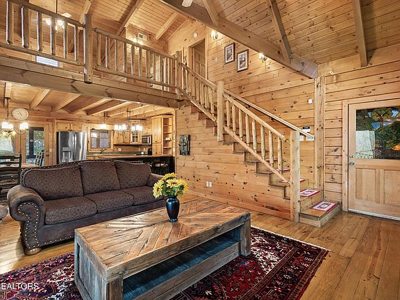 Welcome to this stunning 3-bedroom, 3-bathroom log cabin located in a gated community less than one mile from the entrance of the Great Smoky Mountains National Park. This true log cabin combines rustic charm with modern comforts and even includes its very own treehouse for a one-of-a-kind mountain living experience.