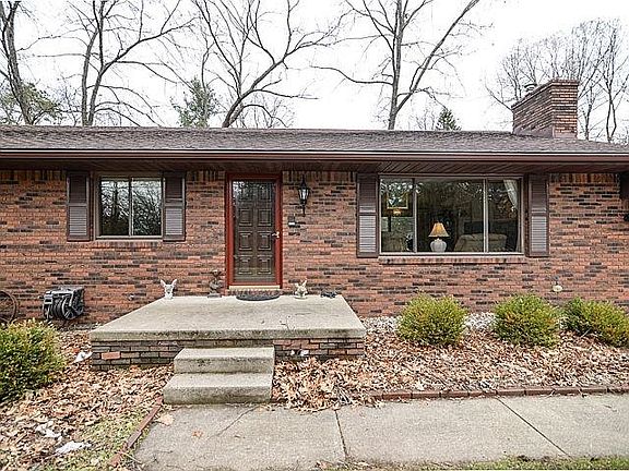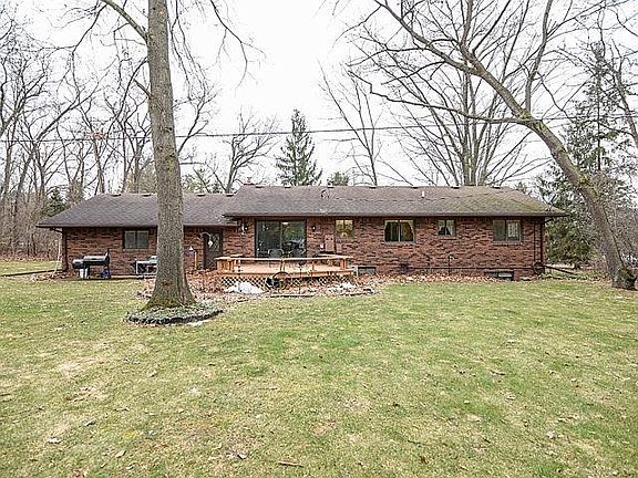 This lovely well maintained and cared for brick ranch sits back on a beautiful one acre lot with many trees that create wonderful privacy. Many updates have been done in the last 5 years, kitchen remodeled, all flooring on entry level replaced and upgraded, including hardwood in living and dining rooms. Entry level bathrooms renovated, new solid panel doors, and more. 3 bedrooms on the main floor, one being used as a lovely study, living room, dining room which has a door-wall to a great deck, and a beautiful back yard. The finished basement has one bedroom and a full bath, family room, laundry room, and storage. 2 car garage is attached to the house as well as a 2nd detached garage with a storage unit attached at the back of it. Whole house generator comes with the house.