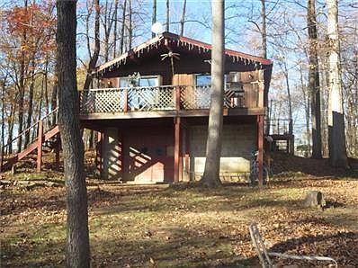 Peace & quiet at this property!! Home is located on a cove with access to the lake. Cute 2bed, 2bath home/ large living room/dining room open to the kitchen. Garage is under the home which will fit several cars or you could close off part & utilize the basement area for additional living space. Almost half an acre lot with circle drive & mature trees. Some updates have been made including new floor, new carpet, new vinyl in kitchen. New furnace. Great weekend get away or year round living.