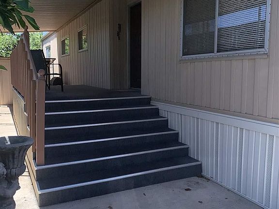 Don't miss out on this spacious mobile home. It has a lot of updated features from exterior paint, deck, A/C, water heater, insulated roof, guest bathroom and more. Large back yard has a Gardners paradise. Pomegranate, Fig, Orange Trees and more. Vegetable garden including tomatoes, green beens, cherry tomatoes, squash, grapes and more. Custom cabinetry in living area, refrigerator, washer and dryer are included. Seller is offering a $5,000 closing cost credit in lieu of flooring. There are two sheds included. Great location in the park. Must be 55+ years and apply with the park management, must make 3 times the rent space which is currently around 795 per mo. to qualify. Mobile home lenders available with a little as 5% down. Amenities include a community pool.