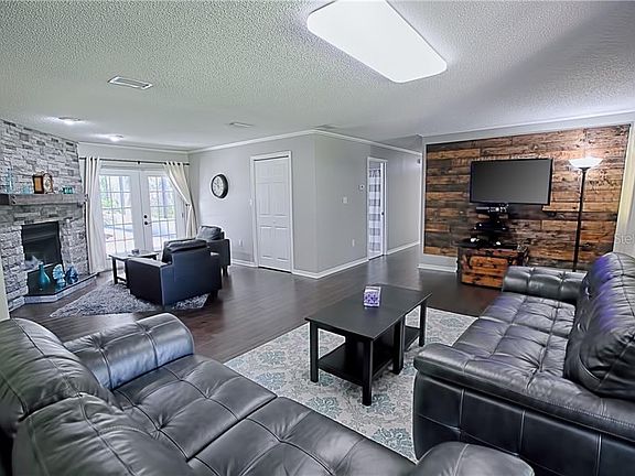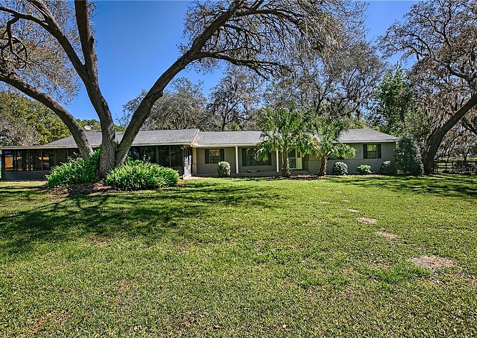 Equestrian Estate! This beautiful 6 bedroom 3 bathroom estate situated on 4.84 +/- Acres has many wonderful features for you and your four-legged friends. From the moment you walk in the door you are greeted with premium styling and materials throughout the home. An ideal mix of engineered hardwood, tile, and carpet creates a setting that is appealing to the eyes and the feet. The kitchen features Corian countertops, stainless steel appliances, accent lighting, and a beautiful backsplash to help make cooking a relaxing experience for anyone. As a focal point of the living space the stone-look wood burning fireplace perfect for taking the edge off on those chili evenings and early mornings. Just off the living space you will find an outdoor oasis enclosed by a large screen cage allowing you to enjoy the outdoors without having to worry about those pesky mosquitos. Use the front porch with plexiglass windows to survey your amazing property and the large mudroom so you won't have to worry about bringing the outdoors inside your beautiful new home. Equipped with 2 horse stalls the completely fenced in property has a great mixture of large shade trees and open pasture land. Saddle up and call today to schedule your private showing of this amazing equestrian estate! *1-year Home Warranty included!