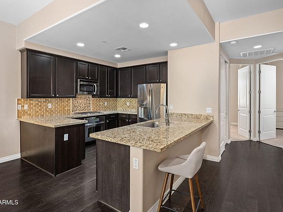 Beautiful 3-bedroom, 2-bath condo with stunning mountain views and a desirable Cave Creek location close to the shops, dining, and galleries of downtown Cave Creek and Carefree. This light-filled home features a spacious open layout, a kitchen with granite countertops, stainless steel appliances, and ample cabinetry. The primary suite offers a private bath and walk-in closet, while two guest bedrooms provide flexibility for visitors or a home office. Enjoy mountain views from the patio and the convenience of a single-car garage in the well-maintained Village at Surrey Hills.