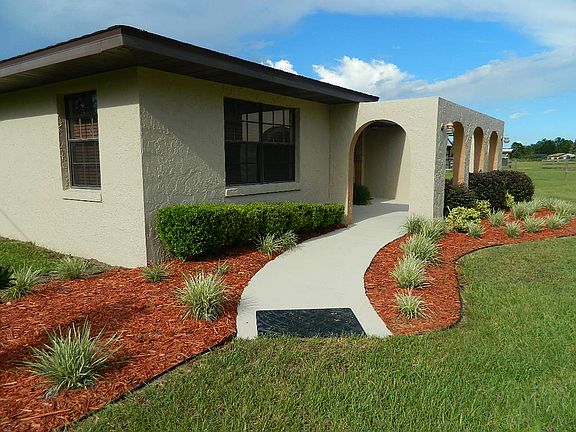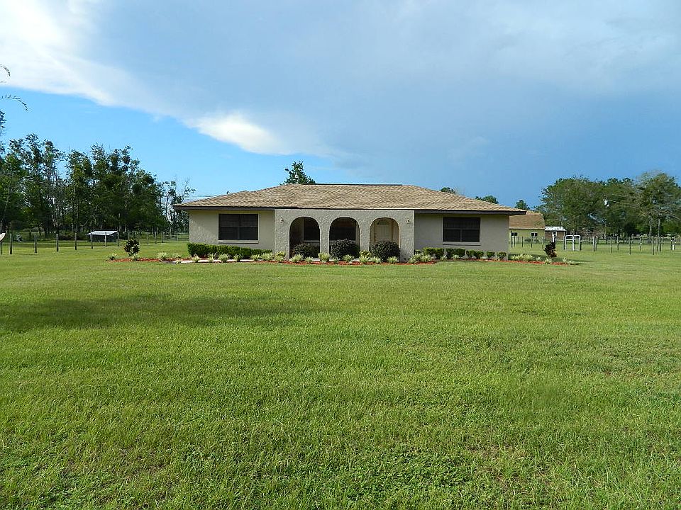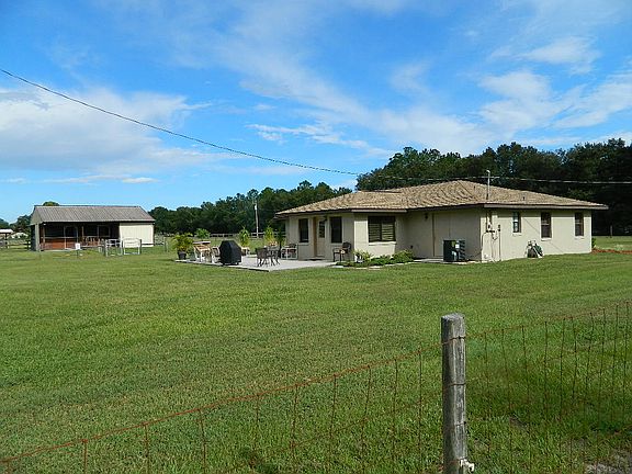 Bring the horses to this 5 Acre mini farm in this scenic 44A area of Eustis, Florida. This recently remodeled home has a 3 bedroom, 2 bath split floor plan with an attractive spanish arched elevation and courtyard entry. Inside this immaculate home you'll find a newly remodeled kitchen (Dec 2011) featuring richly stained shaker cabinets w/modern hardware, granite counters with an undermount stainless sink and tiled floors beneath. A tiled dinette area is adjacent to the kitchen. The master suite is spacious with an en-suite bath. The guest bath was remodeled in 2006 and features tiled floors & walls and a curved vanity with glass top & bowl with modern fixtures. A large living room and guest vestibule provide a nice separation between the master and guest suites. The tiled family or den area opens to the newly expanded back patio overlooking green pastures and barn. This 500 SF patio is ideal for outdoor entertaining or family BBQ's. A NEW BARN built in 2006 features 2 Open Air Stalls, a 19x12 Feed & Tack room and a 36x13 drive through trailer bay. Multiple pastures & paddocks are crossed fenced and ready for livestock. Two additional shed and barn structures on the property provide a bounty of dry storage for lawn and tractor equipment. Other value added improvements to this home are: EXTERIOR PAINT 6/13; NEW ROOF 3/13; NEW 15 SEER HVAC 6/13; SEPTIC SERVICED 2/11; NEW WATER HEATER 3/13 and NEW PRESSURE TANK 2/12.