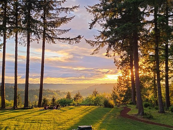 This rare gem of woodland charm showcases unique architecture & design. The welcoming escape is nestled in the trees amongst gorgeous farmland with jaw-dropping views of the valley & mountains. Enjoy a primary on the main floor with a gourmet kitchen with a sitting bar to overlook your slice of paradise. An artistic spiral staircase serves as a captivating focal point and beckons you to the upper and lower levels. Lower level daylight basement features a rec room w/wet bar, bathroom/laundry room, and spacious flex room. Back Upstairs: a loft den overlooking the stunning beauty of the home & landscape, a newly renovated bathroom, and a cozy bedroom. Gated, fully fenced, on 2.5 acres, a large level backyard, and a 28x36 detached workshop.
