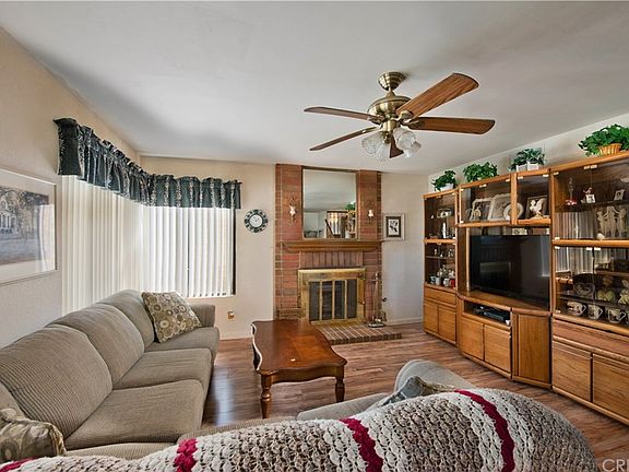 Gated front yard with low maintenance landscaping and arched entryway. Guests are greeted with tall, vaulted ceilings upon entry extending into the living room and dining area. The kitchen features stainless steel appliances, a breakfast bar and bay window overlooking the yard. The adjacent, cozy family room is equipped with a brick fireplace and newer sliding glass door leading to the private yard. Upstairs you'll find two secondary bedrooms and a master suite. Enjoy a cup of coffee or relax and unwind as you enjoy the beautiful mountain and city views from the balcony off of the spacious master bedroom. The master bathroom features dual sinks, a walk-in closet and separate shower stall. Surrounded by mature, shaded trees, the large pool-sized yard boasts lots of space for entertaining, a nice sized patio cover and peaceful city views. The home has been re-piped and also features central air conditioning, a swamp cooler, pergo and tile flooring and a laundry area conveniently located downstairs inside the home. Attached two-car garage with direct access and a large driveway with side access for RV/boat storage. Located in an established neighborhood, close to shopping, dining and schools, and minutes away from freeway access. No HOA or mello roos!