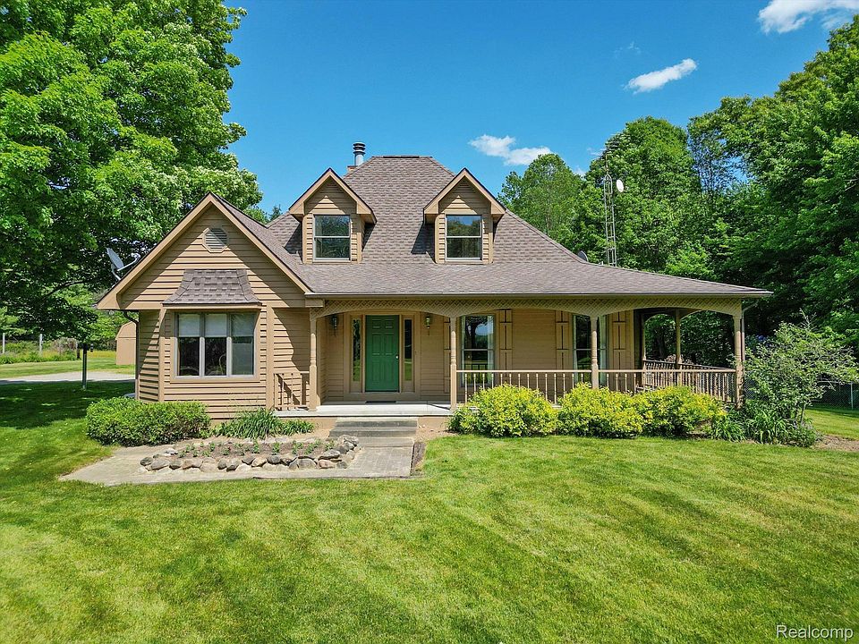 Beautiful colonial home, situated on a secluded, rolling scenic lot just under 10 acres located in the Metamora Hunt Country! Upon entering, you will be greeted by a spacious foyer that leads you to the formal dining room or primary suite with walk in closet and full bathroom. The main level features an open concept kitchen and breakfast nook, complete with granite countertops, stainless steel appliances and ample cabinet space for all your storage needs. The living room features a cozy fireplace and doors opening to the back patio. Finishing off the main level is the den, convenient first floor laundry room, and a half bath. Upstairs, you will find three additional generously sized bedrooms and another full bathroom. The home also includes an unfinished basement, offering plenty of room for storage or potential to be finished for additional living space.