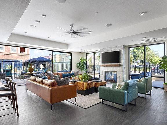 - Exterior features: Attached Garages in Select Homes*, Balcony, Barbecue, Business Center, EV Charging Stations, Full Height Subway Tile Backsplash in Kitchens, High-speed Internet Ready, Kitchen Islands*, Large Single Basin Kitchen Sinks, Large Windows for Ample Natural Light, Lawn, Outdoor Lounges with Games, Package Receiving, Pet Park, Quartz Countertops at Kitchens and Baths, Recessed Lighting in Living Rooms, Soaking Tubs*, Spacious Open Floor Plans, TV Lounge, Two Interior Color Schemes Available, Walk-in Showers with Built-In Seating*
