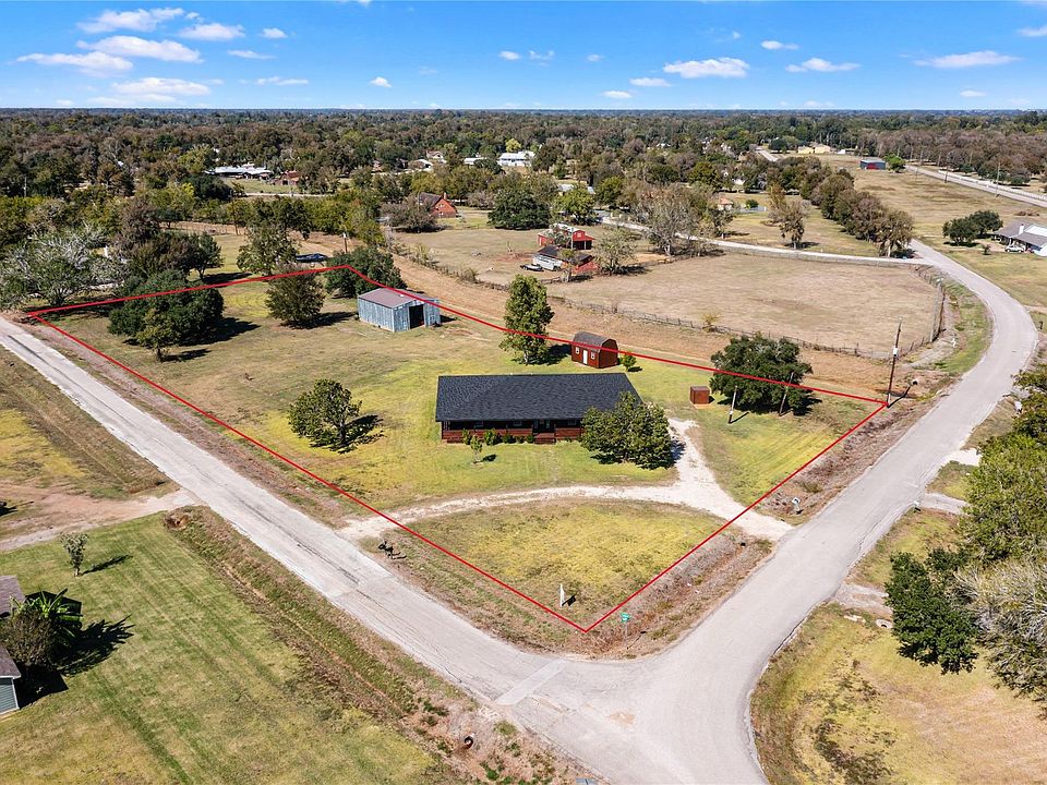 Welcome to your private country retreat at 36610 Lariat in Simonton, zoned to Lamar CISD! Nestled on 2.4 peaceful acres, this charming 3 bedroom, 2 bath home combines rustic character with modern comfort. Step onto the inviting wrap-around porch, perfect for morning coffee or watching sunsets over your property. Inside, you’re greeted by beautiful tongue-and-groove wood ceilings, vinyl plank wood-look flooring, and abundant natural light throughout. The spacious family room offers a vaulted wood ceiling and double doors to the porch. The kitchen features ample cabinetry, granite countertops, breakfast bar, and stylish stacked-stone backsplash. The large primary suite offers a peaceful escape with direct access to the porch. Its luxurious ensuite bath includes a stone shower with a rain showerhead. Outside, there's room to roam along with a storage shed and a metal barn to store all your toys. NEW ROOF installed 5/2025. Enjoy peaceful country living; call us today for your private tour!