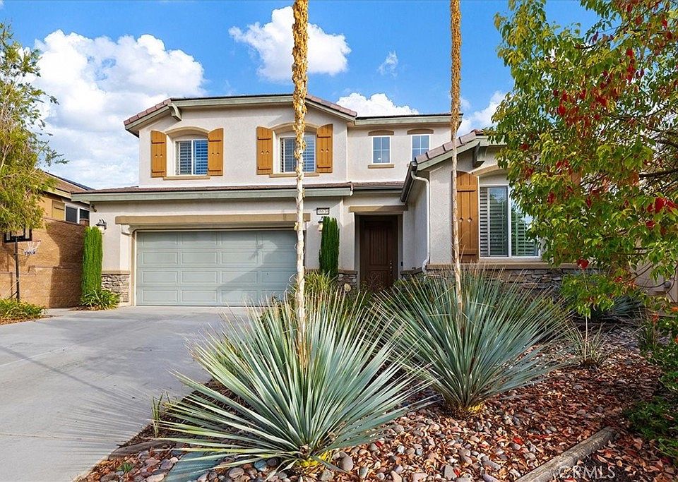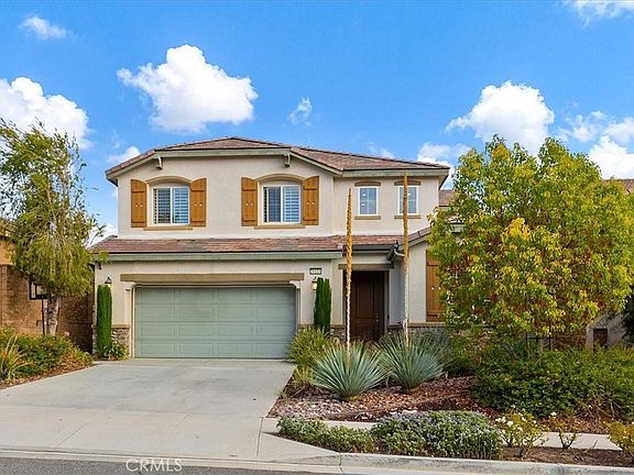 Beautiful Pool & Spa Home in the Heart of Wildomar! Welcome to this stunning two-story, four-bedroom, three-bath home offering 2,389 sq. ft. of comfortable living space. Built in 2015 and ideally located near Inland Valley Hospital, this home combines modern style with everyday functionality. One bedroom and full bathroom are conveniently located downstairs—perfect for guests or multigenerational living. The spacious kitchen is the heart of the home, featuring an extended center island with bar seating, sleek quartz countertops, stainless steel appliances, a double oven, six-burner cooktop, built-in microwave, and an industrial-style stainless steel sink. The open-concept layout flows seamlessly into the family room, where you’ll find built-in shelving, a cozy gas fireplace, and beautiful plantation shutters. Upstairs, the primary suite is a good Size and the Primary Bathroom offers a relaxing retreat with dual sinks, a vanity area, a soaking tub, separate walk-in shower, large walk-in closet, and private water closet. Two additional bedrooms are upstairs with a Full Bathroom with a Tub-in-shower. Also Upstairs is a Private Laundry Room, close to most of the bedrooms and has a large storage closet for linens, towels and supplies. An open loft provides the perfect space for a play area, home office, or media room. Step outside to your private backyard oasis featuring a sparkling pool and spa, Alumawood patio cover with a fan, and plenty of room for entertaining or relaxing year-round. The 2-Car Garage is being used as a gym currently. There is an EV Charger for electric vehicles, a tankless water heater and some of the garage shelving remains. Solar lease to be transferred to the buyer. Conveniently located near shopping, dining, schools, and easy freeway access—this Wildomar gem truly has it all!