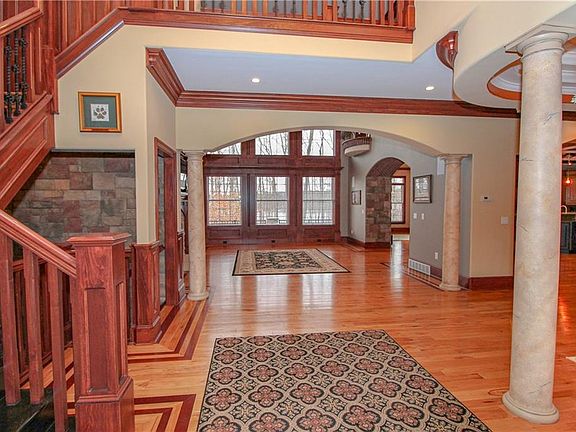 Former builder's model features incredible architectural elements & exquisite craftsmanship. 2 ½ story foyer w/custom Brazilian hdwd flrs. 2 ½ stry Great rm enjoys stone, gas-log frplc flanked by BI, glass-front cabinets. Dining rm w/tray ceiling, crown molding, chair rail & bay wndw. Hdwd flrs continue into the kitchen boasting a bay eating-area w/deck access*wet bar w/BI wine rack, granite counters & twin beverage fridges. Lg granite-topped cntr-isle & prep sink w/disposal. Coffered ceiling, maple cabs w/granite tops, pantry & SS, Electrolux applcs complete the kitchen. Laundry rm w/coat cubbies, washer/dryer & dog-shower! Master suite highlighted by *sitting rm w/beamed*turreted ceiling & stone gas-log frplc. Master ba -*H/H WI closets w/custom organizing systems*H/H vanities*glass shower w/multiple showerheads* jetted tub & separate WC. 2nd level w/4 bdrms- each enjoys access to J&J baths. Finished LL includes*custom office-library w/BI bookshelves & library ladder*frplc &*slider to patio w/waterfall & multiple ponds. Barrel-vaulted entry leads to game rm w/slider to paver patio*separate theater rm w/stone frplc*media cabs*projector & 110" screen. Pub rm has*sitting area w/frplc*expansive bar w/microwave, dishwasher, 2 sub-zero beverage fridges*. LL also features full ba, sauna, wine rm & access to 3 car garage w/heated flr. Control4 Home automation system controls whole-house audio, security & WI-FI. Exterior w/multi-level, composite deck, gazebo w/hot tub & wdbrn frplc!