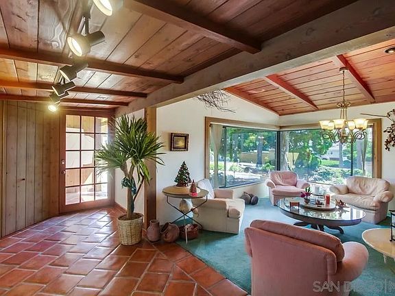 Gorgeous single story Mid-Century Modern Estate high on the hill in the sought after Fleet Ridge neighborhood of Pt. Loma. This home boasts 3+ bds with 3.5 baths, with a spacious 3,294 sq. ft., tile, hardwood and carpet floors, 1 wood burning fireplace, vaulted ceilings and beautiful landscaping. To reduce electric bills this estate has a fully paid New Solar System. Amidst this natural beauty, you will find an amazing waterfall that flows into a beautiful jacuzzi (that will seat 12 people), a green house, storage room, cellar and 2 adu's (permits unknown).