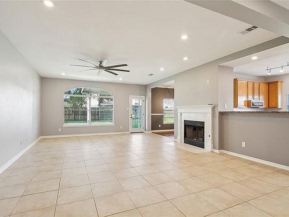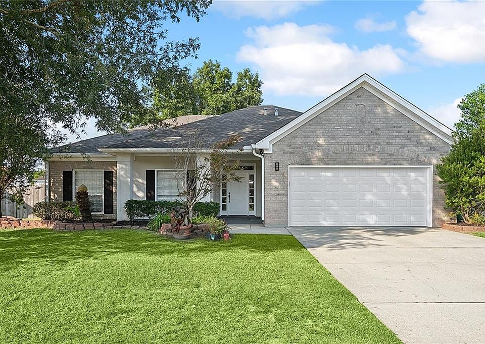 Stunning Slidell Gem. Home has a new roof placed 2022. Relax and entertain in the open, airy living space. Tile and laminate flooring throughout complement the bright ambiance, while the cozy fireplace and modern lighting fixtures add a touch of warmth and style. Kitchen features sleek stainless-steel appliances, granite countertops, and plenty of cabinet space. Primary bedroom boasts elegant crown molding and a bathroom with double vanities as well a separate shower and garden-style tub for ultimate relaxation. Step outside to a covered patio, overlooking an oversized fenced-in backyard. Solar panels on the roof offer energy efficiency and convenience. Centrally located, this home offers the utmost convenience to shopping and the interstate. Don’t miss the chance to make this stunning house your new home!
