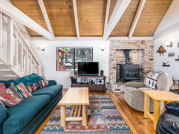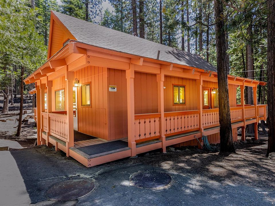 Charming cabin with (seriously) level access that has been tastefully updated by the current owners. In addition to the level driveway, the covered front porch makes winter access easy. Two bedrooms and a full bathroom are on the main level. Upstairs features a 3rd bedroom, loft and 1/2 bathroom. Most furniture will stay! The updated kitchen boasts granite counters and stainless steel appliances including a Wolf range for the chef in the family. Stay warm with a generously sized wood stove and take the chill of with central heat. Big Trees Recreation Center is just down the road! The adjoining lot can be purchased for additional privacy.