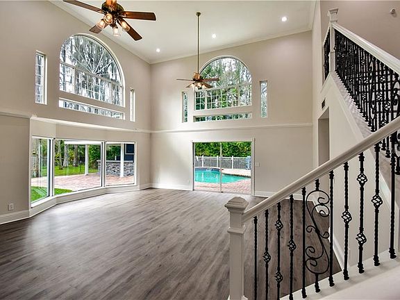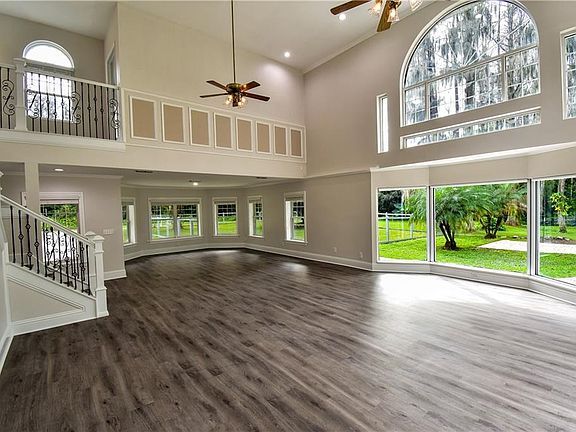 Nestled in a very quiet area sits this beautifully renovated, lakefront home on 1.24 acres with no HOA. When entering your home you are greeted with lots of natural light flowing through your large great room which has 25 foot high ceilings and is open to your dining area. Large sliding glass doors lead you out to your very private, large in ground pool area with pavers as well as an under roof, outdoor kitchen area which also has a half bath for convenience. The kitchen has been completely renovated with soft closing high end cabinetry, quartz counter tops and one of the largest islands you will see with a prep sink. Down stairs there are 3 spare bedrooms, one with an on suite bathroom where the other 2 bedrooms share a fully renovated hall bathroom with double vanities. There is a half bathroom off the living areas for convenience. The master bedroom has great lake views, plenty of space for a king bed, a sitting area as well as an area for office space. The walk in closet is the size of another bedroom and the master bathroom boasts double vanities, a large walk in shower as well as a jetted soaking tub. The home also boasts a large room which the owner used as an office but it could easily be used as a 5th bedroom if needed. The home boasts a side entry 3 car garage, a circular driveway as well as lots of driveway parking. If you like the outdoors then look no further with lots of surrounding woods and direct lake frontage you can enjoy what the Florida outdoors has to offer. You wont be disappointed