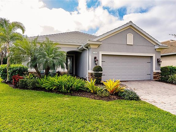 MAGNIFICENT HOME WITH SOUTH PRESERVE VIEWS! This exceptional residence features a great room floor plan with sliding glass doors creating a stunning connection to the outdoor lanai. The oversized lanai has a heated salt pool and spa, Pebble Tec pool surface, colored LED pool lighting, remote control for pool functions, paver deck, full outdoor kitchen with refrigerator and grill, and motorized roll down hurricane screen. This home is designed with luxury and modern style and shows like a model. Designer and architectural appointments include upgraded floor tile, frameless shower glass, designer lighting and fans, and coffered ceilings. The kitchen is open to the great room and makes it the perfect tropical paradise for entertaining. Included are quartz counters, upgraded wood cabinets, GE stainless steel appliances, carrara marble tile backsplash, and under cabinet lighting. The spectacular Den with wood flooring and a custom built in bookshelf unit, makes it an extraordinary comfortable space. Other home features include crown molding and plantation shutters throughout, custom glass front door, custom woodwork in gallery and great room, and an extended garage for storage.