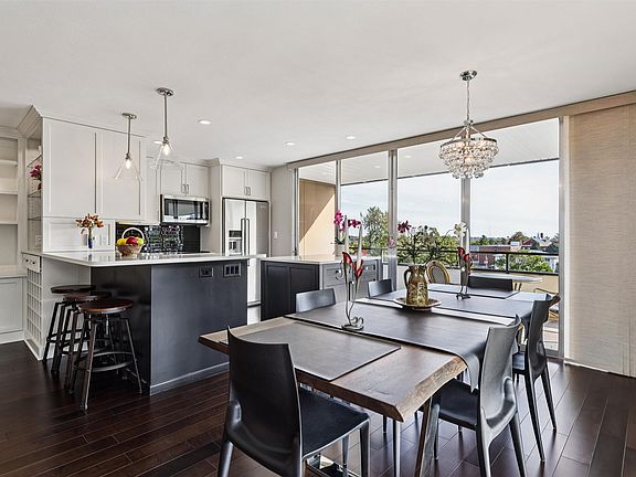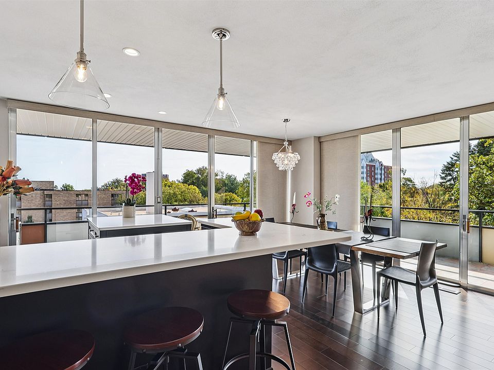 Generous closet spaceCorner condoDes moines viewsRemodeled kitchenNew tile flooringMovable islandDual sinks
