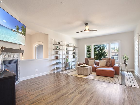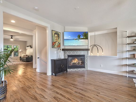 Beautifully updated and move-in ready! Recent improvements include fresh interior paint and new kitchen backsplash (2025), LVP flooring, carpet, and a stylish tile fireplace surround. The primary bath has been fully renovated incorporating a new spa tub (2025), and the upper bath has been refreshed as well. Enjoy peace of mind with newer roof and solar panels (2024) and sump pump/French drain system (2022). Oversized two-car garage with new garage doors (2022), high ceilings, and a Tesla charger. Two covered front balconies (Trex) with territorial view, two back balconies (Trex), a low-maintenance yard, and a charming front water feature complete this home in the highly regarded West Linn School District.