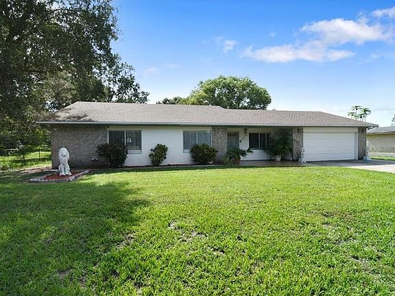 Welcome Home! Well-maintained 3 bed, 2 bath home on fenced acre of land! This home has great curb appeal with landscaping and stone columns surrounding the driveway entry. Step inside to your formal living and dining rooms. The open eat-in kitchen features large garden window overlooking the yard, plenty of cabinets for storage, counterspace, and breakfast bar overlooking the large family room. Owners can escape to their Master Suite with private Master Bath featuring step-in shower with glass doors. From the family room, step out of the sliding glass doors to the screened-in, covered patio where you can relax and enjoy the outdoors in comfort. Venture out into the oversized backyard, with an acre of land, there's plenty of space! This home comes with 3 sheds on the property, including a 3 car garage, and a work shed with A/C. No HOA! Conveniently located close to major shopping, restaurants, Orlando airport, highways, and more! Do not miss out on this opportunity! Welcome Home!