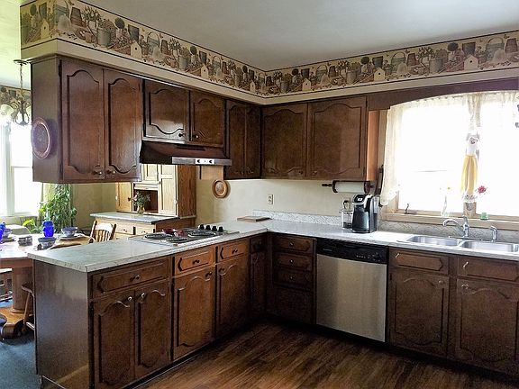 FABULOUS FARMSTEAD SET ON 10+ ROLLING ACRES! MATURE TREES ABOUND! TILLABLE LAND! MUD ROOM. LARGE COUNTRY KITCHEN W/DOUBLE OVEN, PLENTY OF COUNTERSPACE & ADJOINING BREAKFAST RM W/VIEW OF NATURE'S BOUNTY! SPACIOUS FORMAL DINING ROOM W/ENTRANCE T BOTH WRAPAROUND PORCH & GRACIOUS LIVING ROOM W/ABUNDANCE OF NATURAL LIGHT! 5 BR/1.5 INCL 1st FLR MSTR! 4 BR 2nd FLR! ROOM FOR FAMILY/GUESTS/HOBBY ROOM/DEN/OFFICE! BSMT W/INCREDIBLE WORKSHOP & FORCED AIR HEAT! 2 BAY GAR! INCREDIBLE PROPERTY WAITING TO BE FLAVORED WITH YOUR PERSONALITY! SELLER PROVIDING BUYER W/HOME WARRANTY! PART OF 100% BUY BACK PROGRAM!