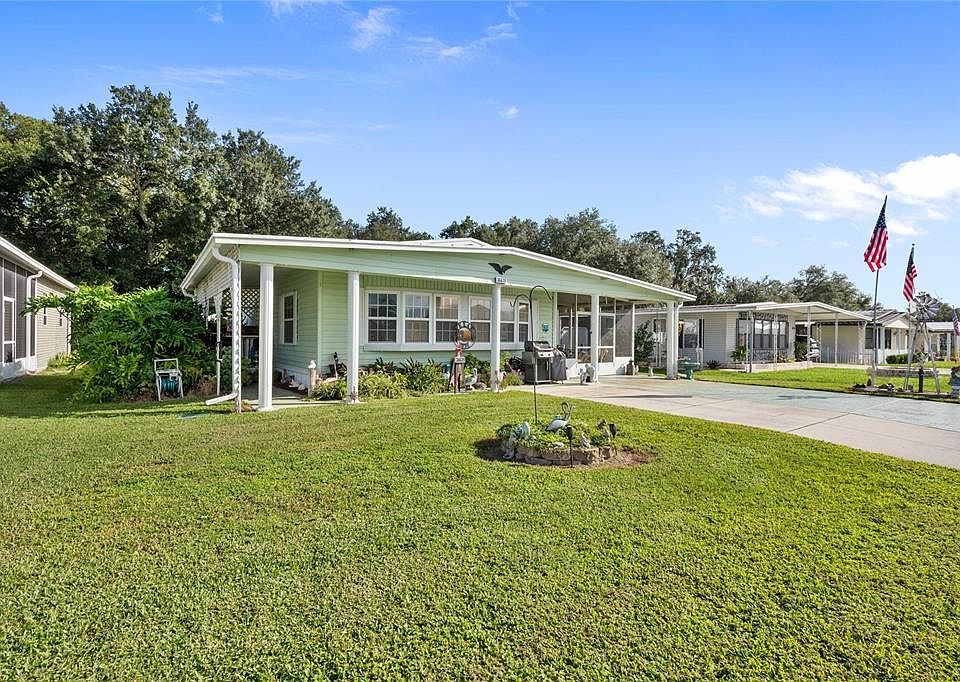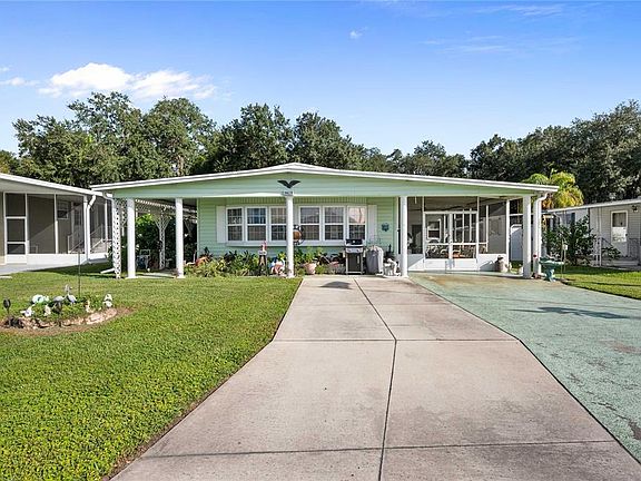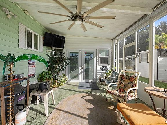 Welcome to your Florida retreat! This charming 2BR/2BA home is located in an active 55+ golf community where you own the land and enjoy a low annual fee of just $435. Nestled on a quiet street, this pet-friendly property with fenced backyard is ideal for both seasonal escapes and full-time living. A double driveway provides plenty of parking for friends, family, or even your golf cart. Relax in the front screen room as you take in the warm Florida breezes, or step through the double French doors into the bright Florida room, thoughtfully added to the central AC system for year-round enjoyment. Inside, you’ll appreciate the open concept layout between the dining area and living room, perfect for entertaining or simply relaxing. A bonus room just off the kitchen makes an excellent office, hobby room, or casual dining space. From the living room, step onto the additional open porch to enjoy the sunshine. The Spacious Owner’s Retreat is large enough for a king-sized bed, complete with ceiling fan, walk-in closet, and en-suite bath featuring an updated vanity and step-in shower. The second bedroom easily accommodates a queen-sized bed and offers a built-in closet and ceiling fan for comfort. A convenient guest bath is nearby. You’ll love the indoor laundry area with extra storage, as well as the many detached backyard buildings that add incredible value—perfect for golf cart parking, a workshop, or extra storage. Enjoy an active Florida lifestyle with access to community amenities, neighborhood activities, and the freedom to bring your furry companion along. Whether you’re hosting a card game, working on a project in your workshop, or simply relaxing on the porch, this home offers everything you need for comfortable and enjoyable living. Betmar Acres is renowned for its exceptional amenities, including 27 holes of golf, two swimming pools, two hot tubs, three clubhouses, scenic walking trails, a library, and game rooms with billiards, table tennis, and board games. The community also offers miniature golf, enclosed shuffleboard courts, tennis and pickleball courts, bocce, basketball, and weekly bingo—ensuring endless opportunities for fun, fitness, and social connection. This home offers the perfect balance of comfort, style, and active living in one of Florida’s most sought-after 55+ communities. Don’t miss your chance—schedule your private showing today and start living the lifestyle you deserve!