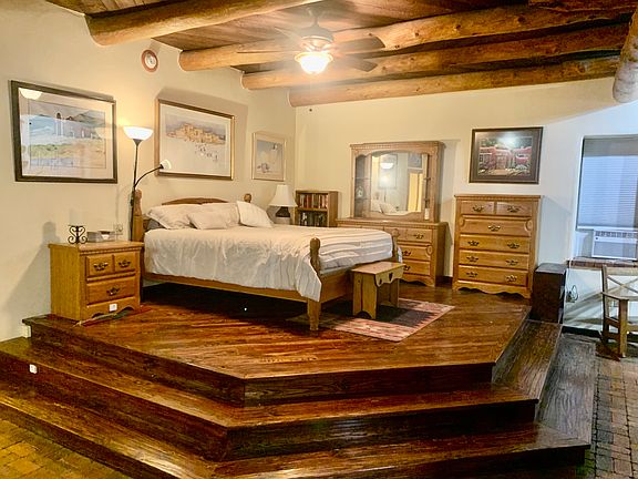 All utilities paid on this Completely Furnished this is True Adobe Home, used to be the old school house for the Town of Peralta that was refurbished, this is not your normal run of the mill rental. The home features 2 bedrooms, only one bedroom is truly private with its own bath, the King size bed is on a large walk-up platform in a corner of the large great room, the bathroom off the great room is a 3/4 bath. There is another twin size bed in the corridor leading to the back bedroom. This home has radiant in floor heat, it has brick floors throughout, no carpeting. The ceiling in the great room is T&G with large vigas, the home includes a large patio area on the side of the home. This home is right off highway 41, so although the interior is quiet, the outside does have some noise. Close to shopping and schools. There is a caretaker onsite in a mobile home, he does have 2 dogs on the property. The property is completely fenced and gated with a remote gate. Rent for a month, or longer!