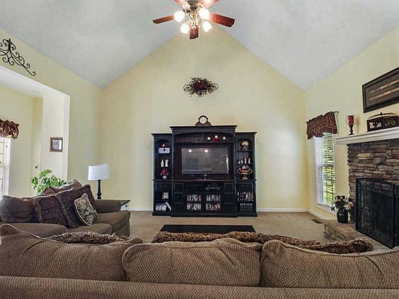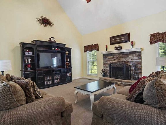 Secluded living sitting on almost 5 acres! This home features 3 Bedrooms 2 baths, finished bonus room, oversized living room with wood burning fire place, formal dining room, spacious eat in kitchen & full unfinished basement. Master suite has a walk-in closet & a large master bath with separate tub & shower. The 2 addt'l bedrooms are on the opposite side of the home and share a bath. Step outside onto the oversized deck to experience the private wooded back yard that backs up to a seasonal creek. New roof was just completed and seller is offering a 1 year home warranty. Come experience all this home has to offer plus, NO HOA! ** Home was built with a concrete storm shelter in the basement**