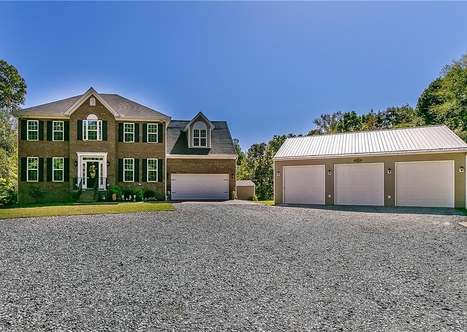 Private retreat on 4.43 stunning acres with views of Graham-Mebane Lake. Impressive home with inviting floor plan - stainless appliances and granite counters, LVP flooring, 3 spacious bedrooms up plus large bonus. Attached 2 car garage plus detached 3 bay 40x40 workshop with attic storage & 240 amp electrical, 2nd exterior building heated & cooled with covered front porch, back deck, hot tub, gazebo. Land has trails and large fenced portion. Spectrum high speed internet available.