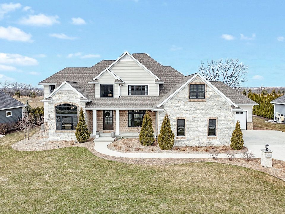 Stunning former Showcase Home located in the highly sought after Ledgeview area. Filled with luxury amenities, this 6442 sqft home includes 5 bedrooms & 4.5 bathrooms. Built for entertaining, the home features a spacious 2 story great room, gourmet kitchen with Thermador appliances, theater room, walk-in wine cellar, tiered patio with built-in fire pit & basketball court on a .88-acre lot. The 1st-floor primary suite is sure to impress with vaulted ceiling, spa like bathroom with double vanities, free standing tub, walk-in tiled shower & a walk-in closet. Formal dining room, office, 1/2 bath & laundry room complete the main floor. The upper level includes 3 bedrooms, 2 full baths, a loft area & a bonus room. Lower level features rec room, theater, and wine cellar. Must see home!