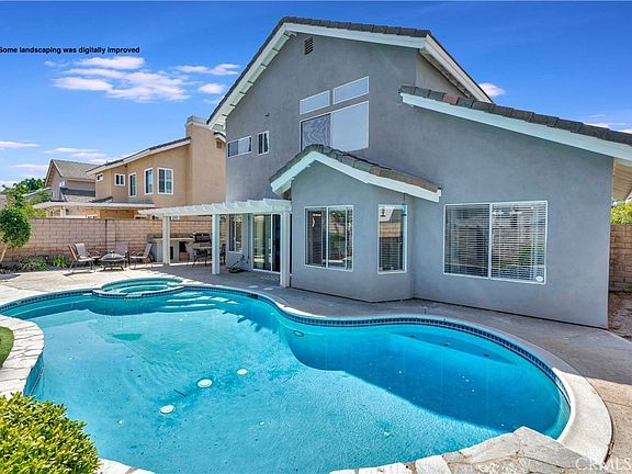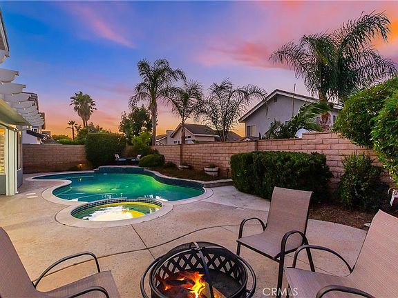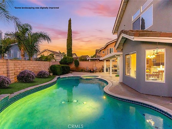 Nestled within the picturesque community of Sierra Del Oro and adjacent to Yorba Linda, this captivating residence offers a truly enchanting living experience. Its captivating curb appeal is underscored by the artful presence of rock columns, aesthetic lighting under the eaves, and almost new exterior paint, inviting you into a world of refined beauty and comfort. A symphony of architecture and nature, the home effortlessly blurs the lines between the indoors and outdoors through stacked windows that create an immersive and tranquil ambiance. Towering ceilings gracefully preside over the elegant living and dining areas, where intricate chair railings and custom window casings frame the space with timeless sophistication. Step onto plush tile floorings that grace the family room and kitchen, where a bespoke fireplace with a custom mantel becomes the heart of this inviting haven. The kitchen boasts professionally painted white cabinetry, stainless steel appliances, and new LED recessed lighting, exuding a modern charm. The reclaimed wood breakfast bar adds a touch of rustic elegance, seamlessly melding old-world warmth with contemporary sensibilities. As you venture into the backyard oasis, an azure pool and spa glisten under the sun, featuring an energy-saving multi-speed pump and a newer heater, promising delightful relaxation and rejuvenation. Entertain effortlessly with an outdoor barbecue area and unwind beneath the sheltering embrace of a covered aluminum patio, thoughtfully adorned with exquisite lighting and a ceiling fan. Ensuring privacy and tranquility, block wall fences encircle the property, creating a haven of seclusion. A sanctuary of serenity awaits in the primary bedroom, graced with wood flooring and complemented by a spacious walk-in closet adorned with organizers. The luxurious, fully remodeled bathroom is a masterpiece of opulence, boasting a vast walk-in shower adorned with custom glass walls, evoking a spa-like experience. Additional highlights include secondary bedrooms with ceiling fans and crown moldings, a whole-house fan for energy-efficient comfort, and a nearly new water heater. The residence enjoys seamless access to the vibrant offerings of Orange County, reachable within a single exit, and is conveniently connected to major transportation arteries, including the 91 freeway, 91 express lanes, 241 toll road, 71 expressway, and the Metrolink, ensuring an effortless journey to all your destinations.