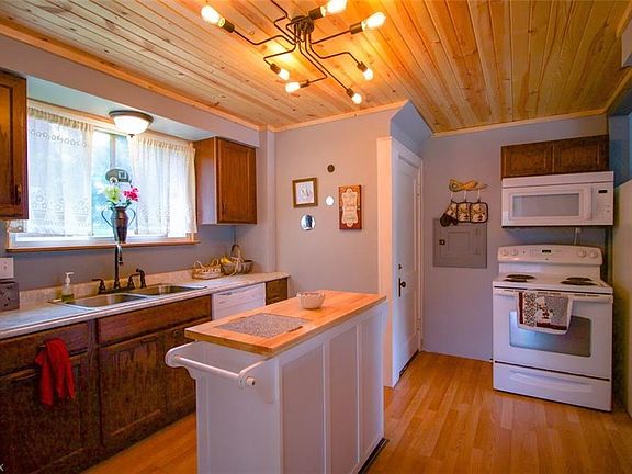 This home starts off with a connected porch as you come up the stairs perfect for entertaining guests. As you walk inside, you see a brand new renovated kitchen with all appliances staying. Dining room is connected to kitchen. Nice size living area with fireplace. Three bedrooms with all new updated ceiling fans. Very spacious downstairs with plenty of room for storage. Newer hot water tank (2016) and furnace was last updated in 2011. Come see this beautiful home and make it yours today!