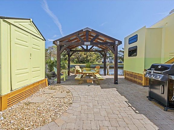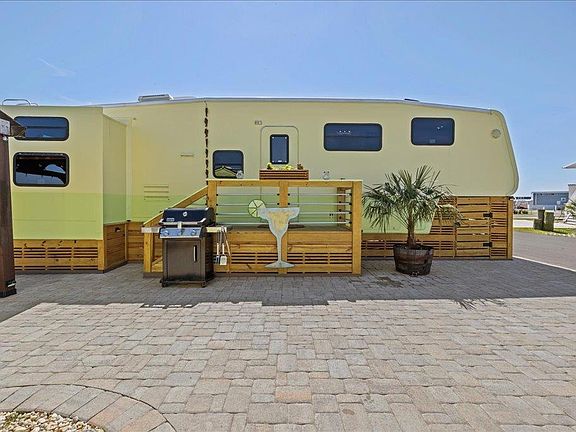 Here is your opportunity to own a turn key vacation rental with all the amenities a resort life offers. Positive rental history for the summer of 2025. Sellers spared no expense on this tiny home. All up to date fixtures and provisions for you to enjoy. Enjoy Tennis Courts, 2 Pools, Playgrounds, Boat Launch, A Private Gazebo for Your Enjoyment. The Public Beach is about 3 Blocks Away, with Bath Houses, Playgrounds & A Fishing Pier. Check Out Back Bay National Wildlife Refuge, Great for Hiking, Biking & Kayaking! Enjoy Great Food & Live Entertainment at BAJA's, A Local Favorite. This is A Vacation Paradise. Sellers just installed a beautiful paver driveway and patio. This camper offers a bunk room which sleeps 3, a pull out couch for 2 and a primary bedroom for 2. Plenty of room for all! Total package price is $350,000 which includes lot, camper, gazebo and all decor and furniture.