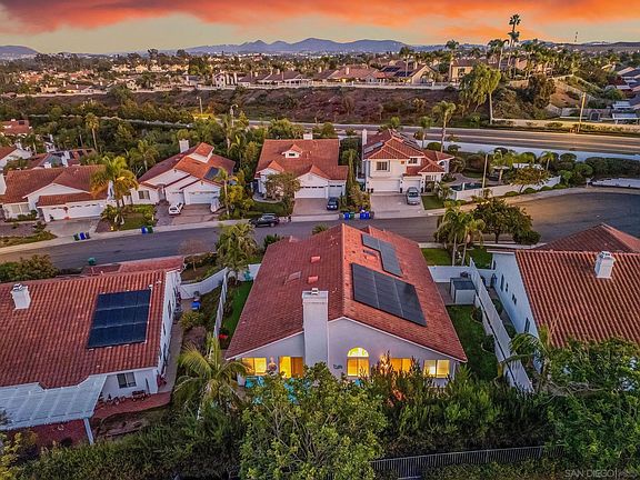 OCEAN HILLS SUMMIT ~ Single-story mission style home situated on a CUL-DE-SAC! Three bedrooms including a large primary with ensuite bath plus bonus room (optional 4th bedroom/office). Well-maintained home with many recent updates. Includes 28 fully-owned SOLAR panels installed in 2023 under 2.0 NEM credit plan allowing for $0 electric bills and 100% excess credits. NEW Bosch all electric heat pump HVAC system, upsized for home, installed in 2023. An electric dryer installed in 2024. New electric heat pump water heater installed in 2024. The only gas appliances left are the cooktop and fireplace. Reconfigured kitchen island with new quartzite top, integrated wine racks, large single sink and stainless steel appliances. New bathroom faucets installed in 2022. New laundry sink and quartzite top with faucet installed in 2022. Travertine throughout entry, living room, hall and bonus room. Wood plantation shutters installed through home in 2022. Plumbing has been re-piped with PEX. Beautifully landscaped yard with a fully operational WiFi managed sprinkler system. New vinyl fence all around the property. New lighting fixtures in baths, dining room, patio, entryway and outside garage. 3 hole putting green in side yard with attractive landscaping. Backyard oasis with vining flowers on privacy lattice work. Pergola conveys. New garden shed conveys. This is a beautifully maintained neighborhood which offers residents mountain views and nearby hiking trails that provide ocean views! Come see Oceanside's hidden gem!