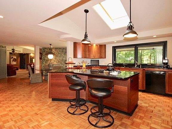 MOTIVATED SELLER, open to offers!! One of the most unique homes you will find in Columbus that sits on nearly two acres and backs to a wooded ravine. A one off design in 1953 by architect Alfred Abernathy, the original blue prints are still with the home! A true mid-century modern home that showcases a clean, minimalist aesthetic, an emphasis on bringing the outdoors in, and the presence of angular structures. The kitchen includes custom Kraftmaid solid birch cabinets with built-in drawers, spice racks and mixer stands. Mahogany and cherry woodwork found throughout the home, especially in the pub that was originally a 2 car garage. The current garage was added in 2000 and is complete with heating and cooling, work benches and a hot-cold wash tub.