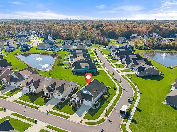 Welcome to The Estuary — where comfort meets coastal charm! This beautifully upgraded 3-bedroom, 2-bath home sits on a desirable corner lot with serene pond views and extra green space thanks to adjacent community land. Enjoy the ease of one-level living with thoughtful enhancements throughout. Step onto the upgraded paver porch with a cozy sitting area, then enter a stylish interior featuring wainscoting accents, luxury vinyl plank flooring, and a custom 8-foot glass door leading to the mudroom. The gourmet kitchen boasts quartz countertops, a spacious island, newer appliances, a stunning backsplash, and pull-out drawers in every lower cabinet. A walk-in pantry and custom coffee bar add both function and flair. The dining area shines with upgraded lighting, while the living room offers ample space for gatherings. The primary suite features a shiplap accent wall and a spa-like bathroom with a walk-in shower, double vanity, and upgraded mirrors. All bedrooms include plush, upgraded carpet and plantation shutters. Enjoy outdoor living on the screened-in porch or the professionally designed patio, perfect for grilling and relaxing amid lush landscaping. The finished garage is a dream workspace with painted walls and floors, barn-door storage, and heavy-duty shelving. Additional exterior features include a paver walkway and a vinyl enclosure for trash bins. The Estuary community offers an unmatched lifestyle with amenities like a beach shuttle, fitness center, clubhouse, pickleball and tennis courts, two dog parks, seven miles of walking trails, kayaking, catch-and-release ponds, and vibrant neighborhood events. Don’t miss your chance to tour this exceptional home — schedule your visit today!