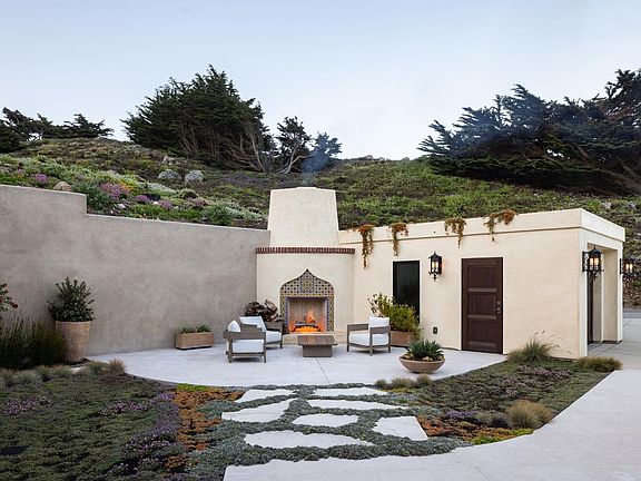 Le Cap du Roc is an architectural masterpiece sited on 2.8 acres, boasting 400 feet of pristine and wild oceanfront on the coveted Big Sur Coastline. Located in the private haven of the Sea Meadow Community, its sweeping coastal views are perfectly framed by floor to ceiling windows allowing breathtaking views from every room. The 3,416 sqft, 3 bed/3 bath home has been fully reimagined from the ground up with an effortless flow through the single-story layout. Approaching the home, you are welcomed into a sheltered courtyard with a gorgeous outdoor fireplace, just one of many spaces for indoor-outdoor entertaining. Other highlights include an in-ground hot tub, an expansive terrace with lounging areas, and a gourmet kitchen open to the dining/living room with stunning, wood-burning fireplace. Each bedroom is a spa-like suite, there is an office with a fireplace, and beautifully landscaped grounds with pathways to explore. Stand at land's end and take in the beauty of the Pacific or descend the coastal stairs to access a rugged cove. Feel the energy of the sea where legend has it, the pirate LeRoc Corsaire hid his treasure in a cave in the 1700s. This is your rare opportunity to have gated, oceanfront luxury just minutes from all the amenities of Carmel, Pebble Beach, and Big Sur.