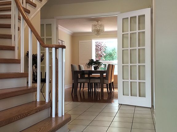 Beautifully Renovated Modern Kitchen With Granite Counters, Glass Backsplash, S/S Appliances, & Extended Cabinets. Inviting Family Rm Features California Shutters, Beautiful Mantel, French Doors, Hardwood Floors, Arched Entrance, Fire Place & Crown Moulding! Entertainers Delight Finished Basement W Newer Plank Lvt, Pot Lights, Wet Bar And Plenty Of Storage. Master bedroom 5 Pc Ensuite, Self Closing Doors & Wic. 2 Tier Deck Surrounded By Beautiful Landscaping! Water Softener. Wired for E-V power charging in the garage in 2018 (power charger not installed). Lots of rest original windows replaced (2018), Auto water springkler system atted for landscape (2018). Extra Heat pump added (2023). Great Location, Great Value, Close To Parks/Trails, Transit, Shopping & Across Street From Schools! Move In Ready!