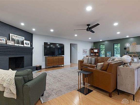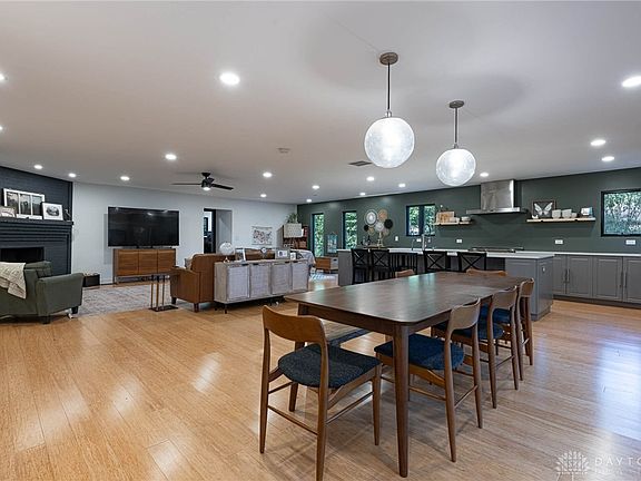 Welcome to 3667 Creekwood Ct, a stunning Beavercreek ranch nestled at the end of a quiet cul-de-sac on a large, tree-lined lot with a peaceful creek flowing just beyond the backyard. This beautifully updated home perfectly blends modern elegance with natural beauty. Step inside to discover a completely remodeled open concept home. Fully renovated gourmet kitchen featuring quartz countertops, brand-new custom cabinetry, and an impressive high-end appliance package that includes a 36-inch range, wall oven, wine fridge, and ice maker. The oversized kitchen island is the perfect space for meal preparation, casual dining, and entertaining guests. Nearly floor to ceiling windows provide inviting natural lighting for the Kitchen, and Living/Dining Room area. The fully remodeled Bathrooms showcase high-quality craftsmanship with custom tile work, new vanities, mirrors, and stylish fixtures throughout. Primary Suite offers attractive accent wall, generous walk-in closet and attached Primary Bathroom. Three additional Large Bedrooms offer ample closet space just steps from sparkling Full Hall Bath. Thoughtful updates and finishes throughout. Located in the desirable Beavercreek community, just minutes from I-675, Wright-Patterson Air Force Base, Wright State University, shopping, dining, and local parks. Truly a one of a kind home.