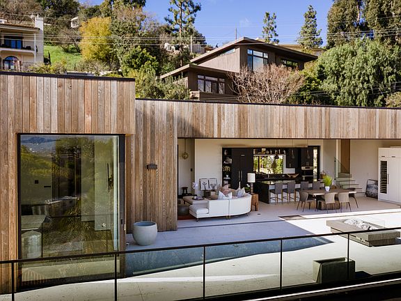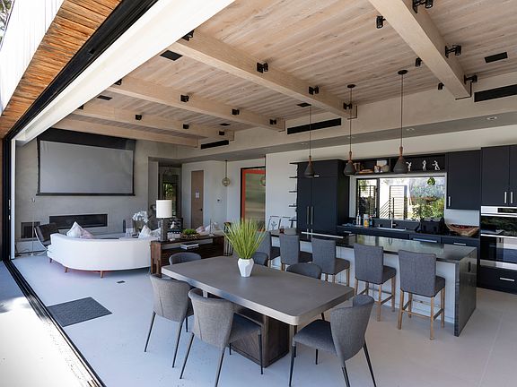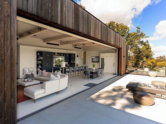 Set within coveted Sherman Oaks, this sun-lit home with an abundance of natural light and mature trees, blends seamlessly into its surrounding natural environment and affords the comfortable coexistence of indoor and outdoor living. Upon entering this 5 bedroom, 4.5 bath home, 12ft high beam ceilings highlights natural light, embracing both the exterior and interior setting and accentuating the wood, stone and steel accents that are layered amongst the greenery. This smart home with unique finishes and over 30ft of Fleetwood doors, draws breathtaking open architecture views of the landscape inward while simultaneously offering expansive vistas that stretch as far as the eye can see. The Chef's kitchen, adorned with Dacor's top of the line Modernist collection, includes Gaggenau's 100 wine bottle fridge. Just steps from the gourmet BBQ is a 60ft pool and spa, which provides the canvas for epic celebrations, and a haven for entertaining. Barley Blue Home, Design Build, spared no details.