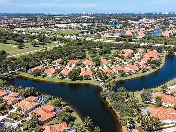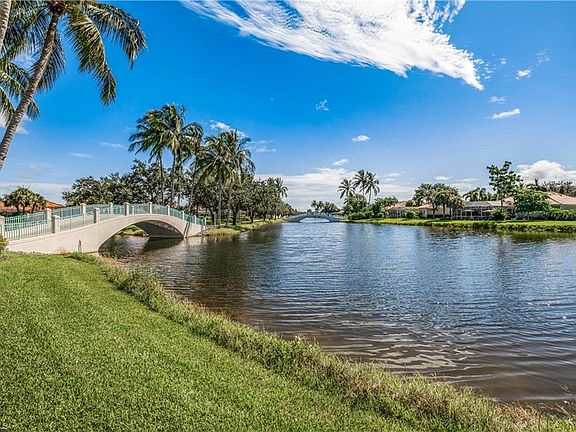 If you want to be wowed, you have to see this residence. Located in the gated community of Village Walk, this extended Villa captures the Naples lifestyle. Enjoy the best views in the community…Venetian style bridges combined with long lake views. All this from the main living areas, the primary bedroom, and the private pool. Wonderful sunsets with highly desirable western exposure. So many upgrades - new quartz counters, new water heater 2021, freshly painted throughout most of the home to include garage floor, and exterior. The roof was replaced in 2018. Electric and manual hurricane protection throughout. Light neutral tile throughout all main living areas. Custom closets. Larger lot with rare private side yard patio allows great space to garden & privacy wall offers a feel of privacy. Village Walk is an amenity rich community with an onsite restaurant, 2 pools - resort & lap, tennis, pickle ball, bocce, gym, community center and more. Less than 5 miles to the Beach and minutes to renowned shopping and restaurants. Move right in as this 2 bedroom + Den / 2 car attached Villa is turnkey furnished from top to bottom! Pet friendly! Agents see confidential remarks