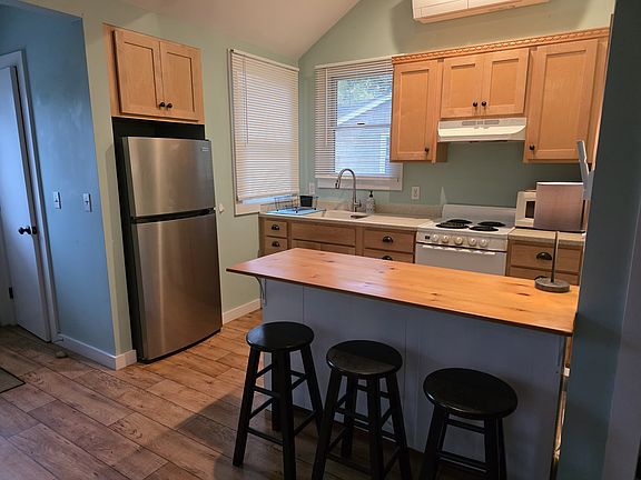 Cranberry Cove in Brewster! Perfect year round cottage for a "Cape Cod get away" or affordable year round Living! Cranberry Cove is a quaint collection of privately owned condo cottages on Brewster's historic main street. This 2 level condo has a large main floor with kitchen, dining area, half bath and a living room with a wrap around deck!. The spiral staircase leads to the walk out lover level and a good sized bedroom with additional slider offering a pretty view of the surrounding woods. laundry and half bath are off the bedroom. I deal for 1 or couple. Unit comes fully furnished; just bring your suit cases! All electric with central air! Easy access to area beaches, and Cape Cod Bike trail!